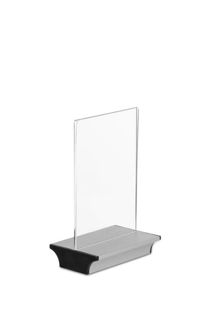 Prime A6 ir divpusējs galda informācijas statīvs, kas ideāli piemērots izvietošanai uz galdiem, letēm vai reģistratūrām dažādās publiskās telpās – restorānos, bankās, viesnīcās, birojos un veikalos. Statīvs apvieno vieglu alumīnija pamatni ar biezas, caurspīdīgas akrila (pleksiglasa) kabatas estētisku un stabilu dizainu. Modernais, minimālistiskais izskats ļauj pilnībā izcelt ievietoto informāciju vai piedāvājumus.