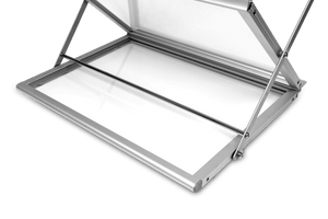 Montana brochure holder A3 ir viens no populārākajiem A3 formāta brošūru statīviem, kas izceļas ar divpusēju piekļuvi materiāliem un nelielu svaru. Plaukti ir izgatavoti no izturīga alumīnija, statīva rokas – no sudraba krāsā pulverkrāsota metāla, bet plauktu apakšas veidotas no biezām, caurspīdīgām pleksiglasa plāksnēm, nodrošinot stabilitāti un ilgmūžību. Statīvu iespējams izvērst bez instrumentiem tikai dažu sekunžu laikā. Salocītā veidā tas aizņem maz vietas, savukārt komplektā iekļautais alumīnija koferis nodrošina drošu un ērtu transportēšanu un uzglabāšanu. Montana ir iecienīta izvēle veikaliem, viesnīcām un izstādēm, kur svarīga ir gan estētika, gan mobilitāte.