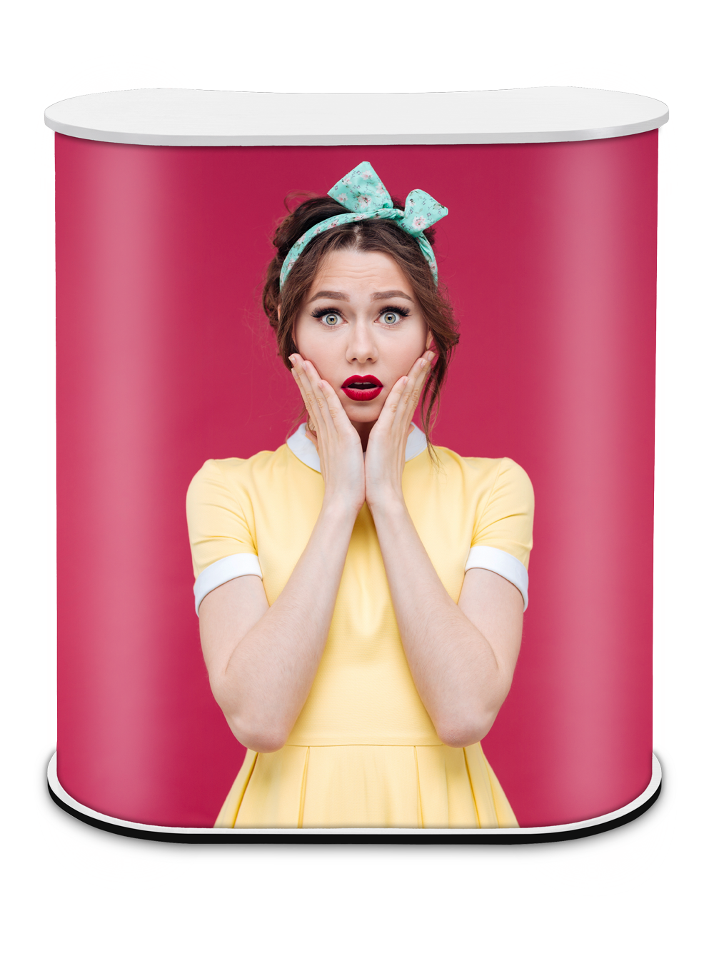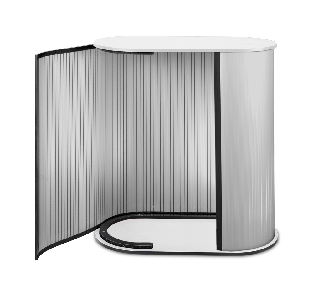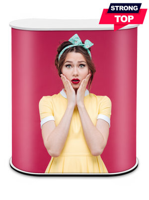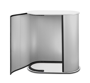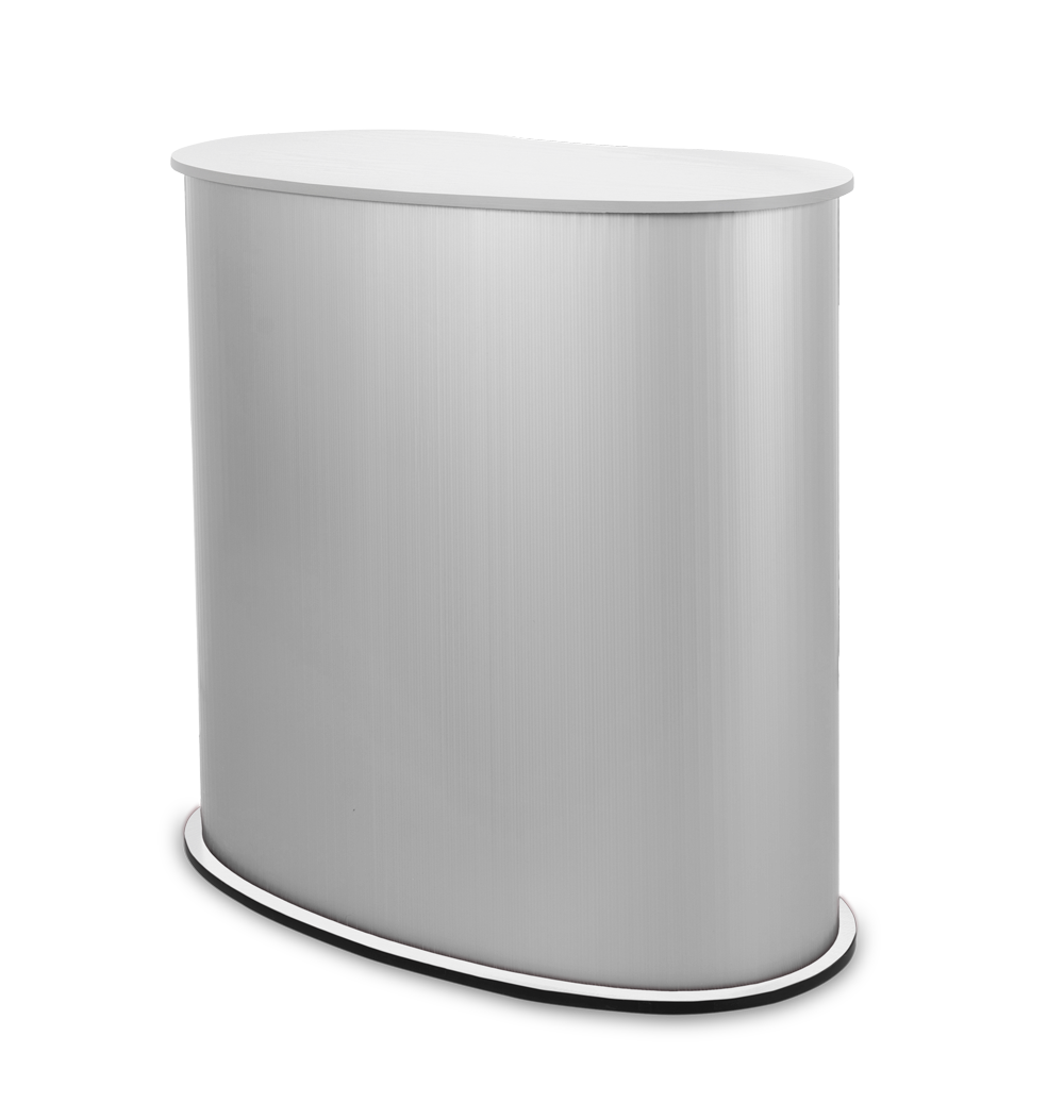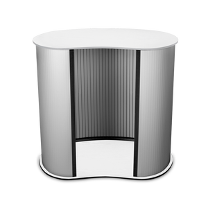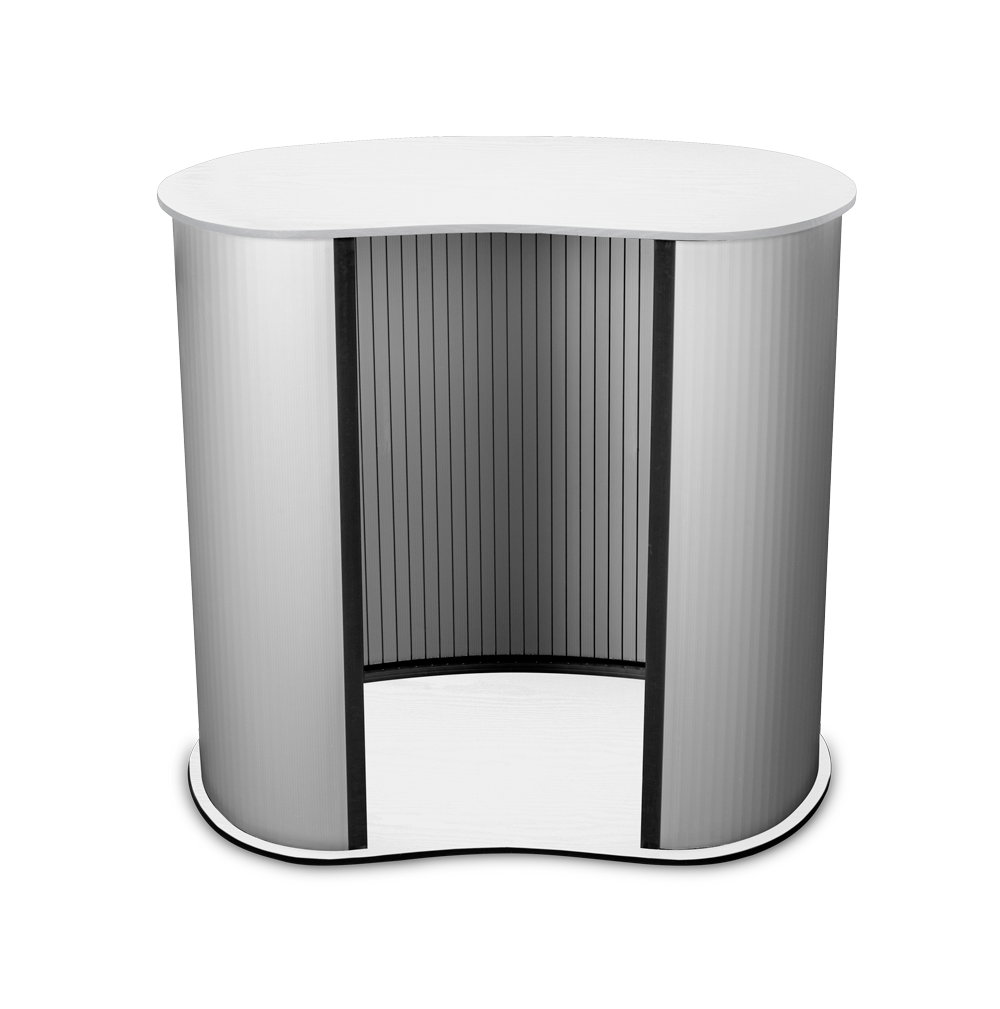Promo 2 Counter ir stabila lete ar izturīgu balto koka virsmu. Velcro montāža bez instrumentiem ļauj to ātri salikt un izjaukt, nodrošinot ērtu lietošanu veikalos, izstādēs un prezentāciju zonās.