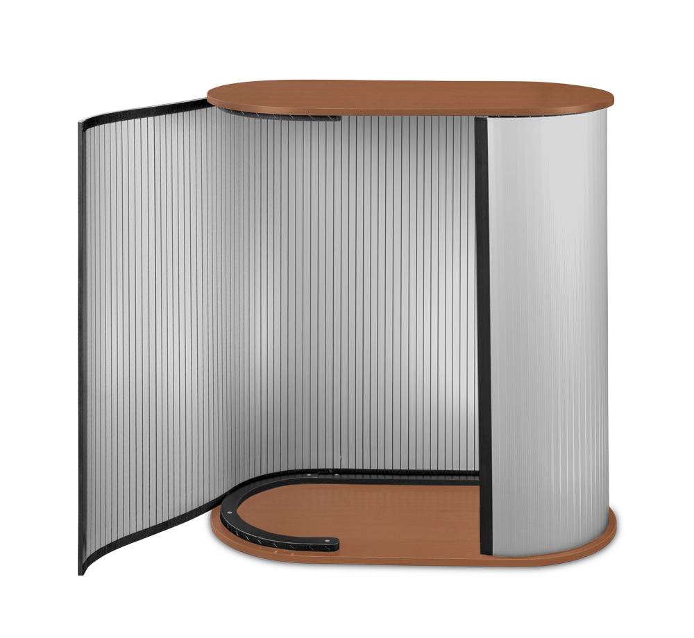 Promo 2 Counter ir stabila un viegli saliekama lete ar izturīgu koka virsmu. PVC sieniņas ar Velcro stiprinājumiem nodrošina ātru uzstādīšanu un demontāžu. Piemērots tirdzniecības telpām un izstāžu stendiem.