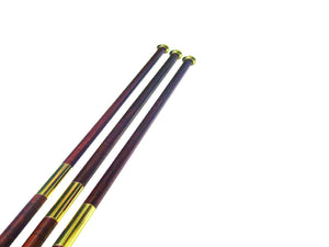 Materiāli un dizains: Statīva pamatne ir izgatavota no augstvērtīga tumša koka, kas piešķir izstrādājumam elegantu un cēlu izskatu. Finiera apdare nodrošina gludu un patīkamu pieskārienu, vienlaikus uzsverot dabisko koka struktūru. Masts ir izgatavots no pulēta misiņa, kas ne tikai garantē ilgu kalpošanas laiku, bet arī piešķir produktam izsmalcinātu zelta spīdumu. Misiņa apdare lieliski kontrastē ar tumšo koku, radot harmonisku un greznu kopskatu.