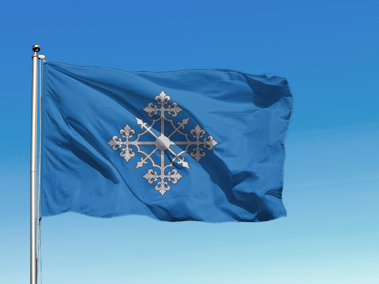 Materiāls: 100 % poliesters (110-120 g/m²) - viegls un praktisks karogu audums, kas ātri žūst, labi plīvo vējā un ir piemērots regulārai lietošanai āra apstākļos.