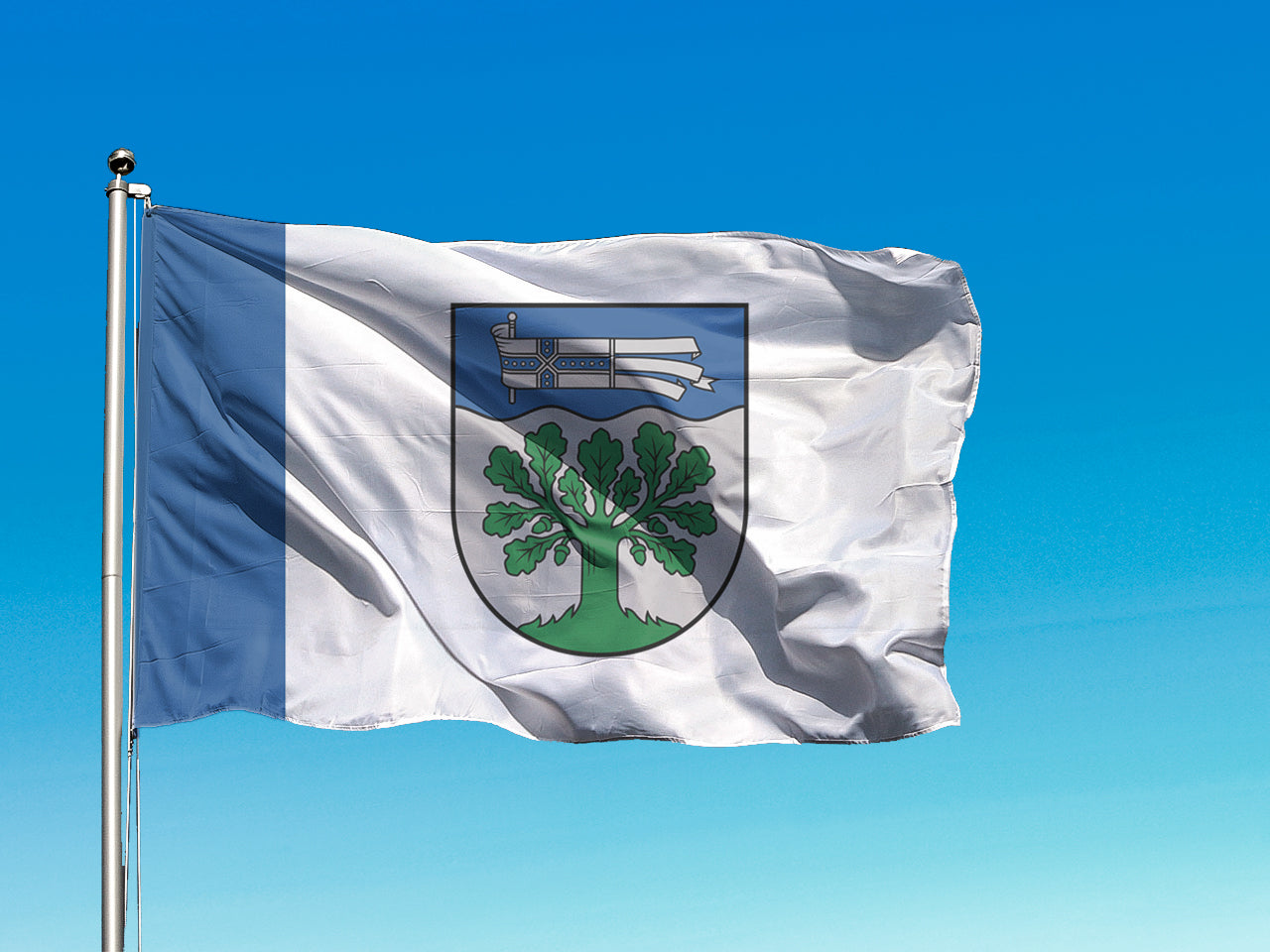 Materiāls: 100 % poliesters (110-120 g/m²) - viegls un praktisks karogu audums, kas ātri žūst, labi plīvo vējā un ir piemērots regulārai lietošanai āra apstākļos.
